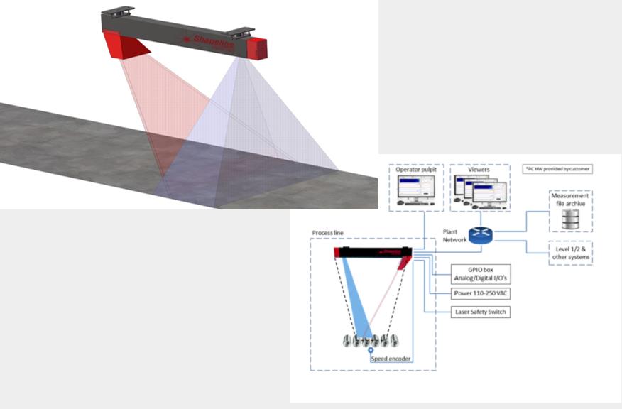 It is mainly suitable for ribbon material with width over 700mm. It contains a sensor composed of two parts without direct mechanical contact. Optical measurement element placement was calculated by Shapeline based on optimized measurement accuracy, measurement range, and physical size. The installation of each system is unique and customized to the actual situation of the customer.