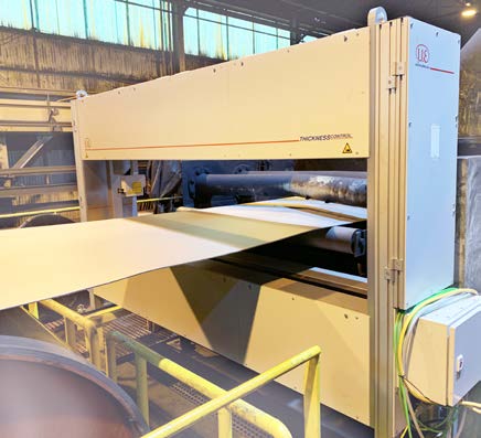 采用O 形机架结构,因此非常适合较大宽度以及通过快速横动记录横向轮廓。可为此选择将横动速度提高到64米/分钟。系统集成专利温度补偿功能,可补偿在较大宽度情况下温度对于机械结构产生的严重影响。为此,在机器中集成一个温度稳定的特制机架作为参照。借助额外的传感器技术,可对测量机架上由于温度梯度引起的变化进行测量,并且通过算法进行补偿。
